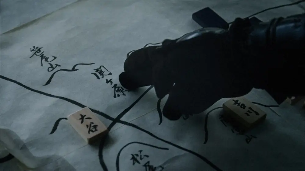 数的優位に立った三成は、豊臣秀頼(重松理仁)と毛利輝元(吹越満)の本軍を待つばかりだが「決戦の地は、おそらくここ(美濃・大垣)にはなりますまい」と地図を手に取る。