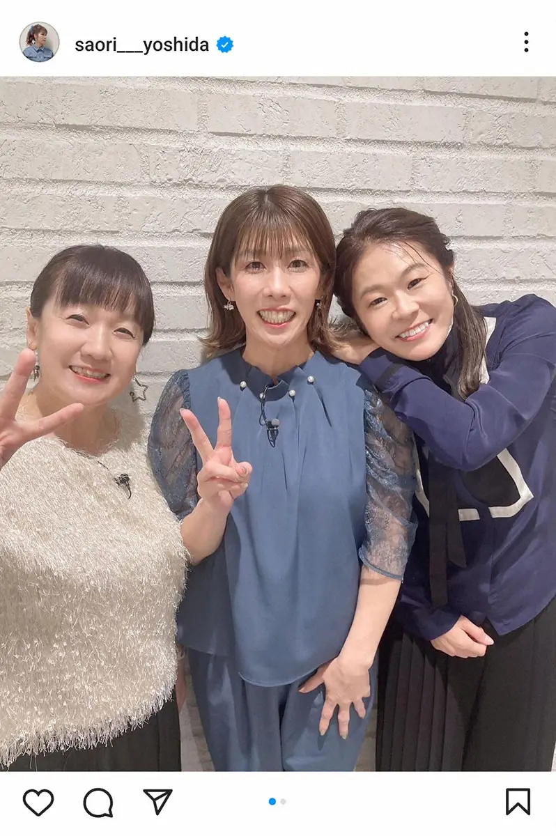 吉田さんは「憧れのアスリート谷亮子さんと偉大な先輩の澤穂希さん 今回一緒に共演させていただいて大変光栄でした」とつづり、この日放送の日本テレビ系「スポーツ中継70年 歴史を変えた瞬間TOP100」で共演したと報告し、2000年シドニー、04年アテネ五輪柔道女子48キロ級金メダリストで、元参院議員の“ヤワラちゃん”こと谷亮子さん(48)、サッカー元日本代表のエースで、11年のW杯優勝メンバーの澤穂希さん(45)と並んで笑顔の姿を披露した。