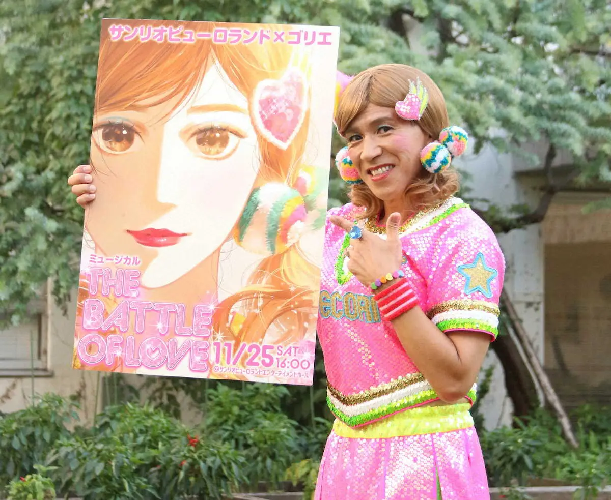ガレッジセールのゴリ(51)扮するゴリエが8日、都内で主演するミュージカル「サンリオピューロランド×ゴリエ ミュージカル~THE BATTLE OF LOV~」の合同記者会見を開いた。