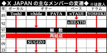 X JAPANとしては今年7月に新曲「Angel」を発表したが、ライブなどの機会はなかった。関係者によると、HEATHさんは周囲には「またX JAPANで活動したい」と語っていたが、その思いはかなわなかった。