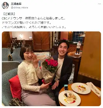 三浦志麻、CBC榊原アナと結婚!元中日チア&ドラ魂キング担当「ドラゴンズが繋いでくれたご縁です」