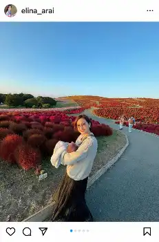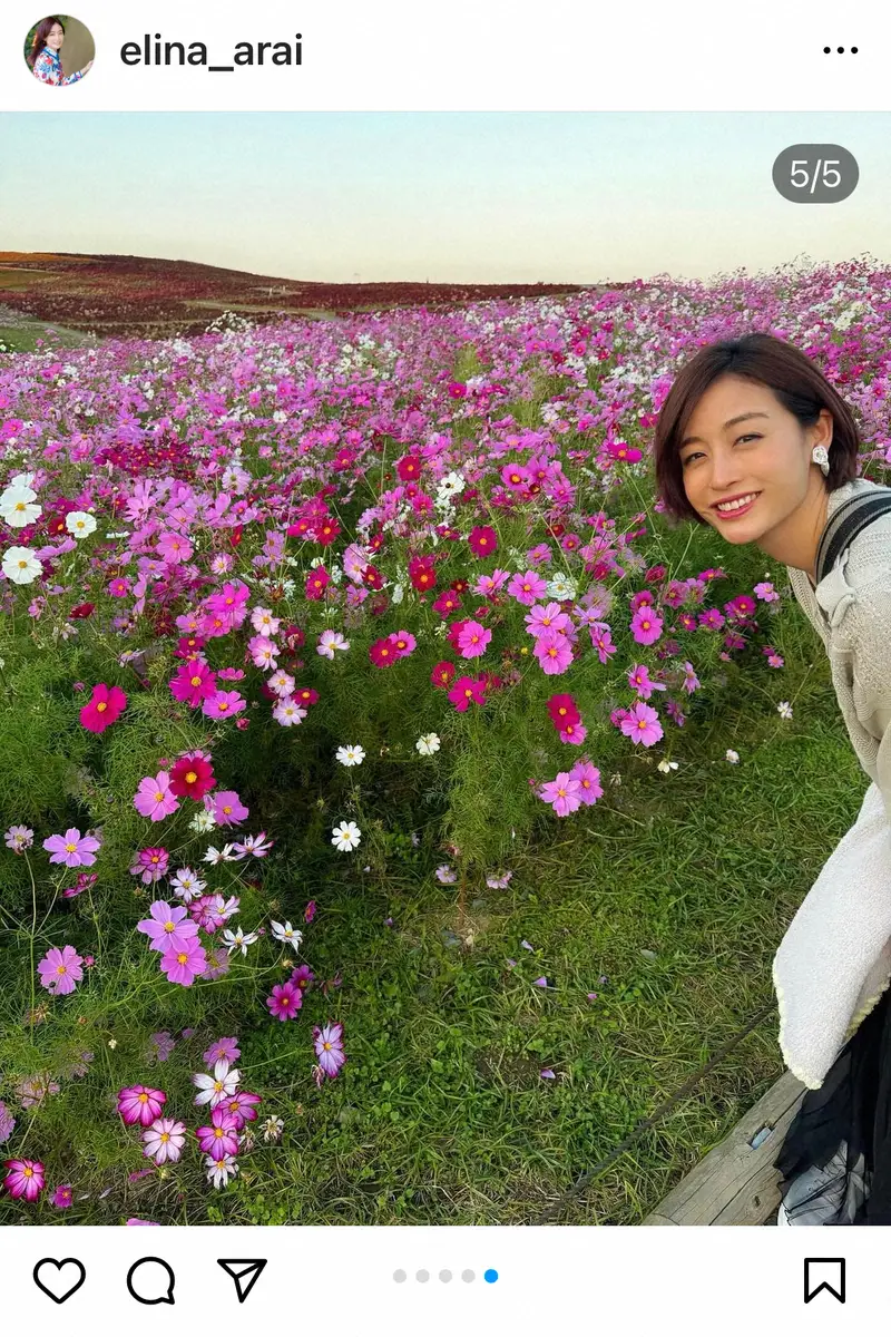 ハッシュタグでも「#国営ひたち海浜公園」「#コキア」「#新井恵理那」を添え、国営ひたち海浜公園に出かけたことを明かした。