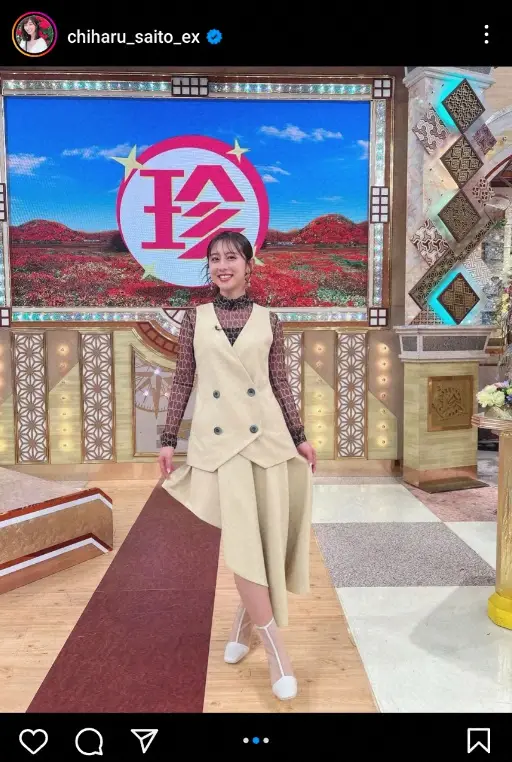 斎藤ちはるアナ “半分ミニスカ”衣装披露に「斬新」「斎藤サンしか勝たん」「安定の美です」