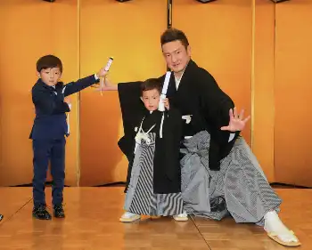 会見後の撮影に父と同じ和装で現れた夏幹くんは初お目見得に「うれしいです」と大きな声であいさつ。歌舞伎が大好きだといい、稽古について難しいところは「ありません」と即答し、大物ぶりを見せた。将来は「手が大きくてかっこいい、パパになりたい」と父を見上げると、獅童は「なっちゃんもいっぱい食べて、大きくなろうね」と父の顔をのぞかせた。