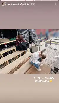 ストーリーズでは、「リハ後のお母さん2人」とリハーサル後にグッタリする辻と矢口の姿を投稿している。