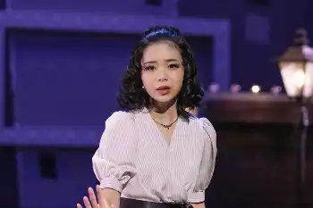 連続テレビ小説「ブギウギ」第35話。日帝劇場・ステージにて。新曲を熱唱する福来スズ子(趣里)(C)NHK