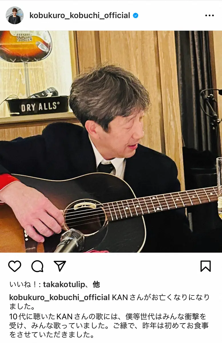 「コブクロ」小渕健太郎 Photo by スポニチ コブクロ小渕がKANさん追悼 昨年クリスマスに食事、ビートルズ演奏「それ… ギャラリーで見る この記事のフォト 2023年11月17日の画像一覧 もっと見る 2023年11月17日の画像をもっと見る
