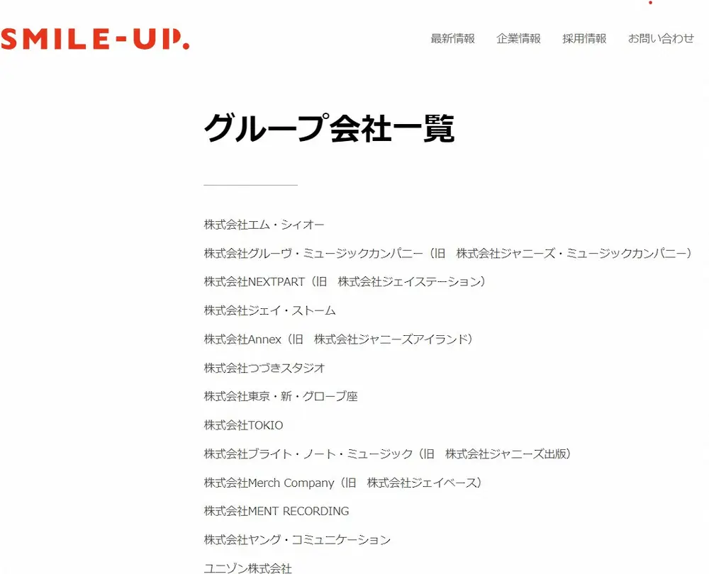 「SMILE-UP.」関連会社は以下の通り。