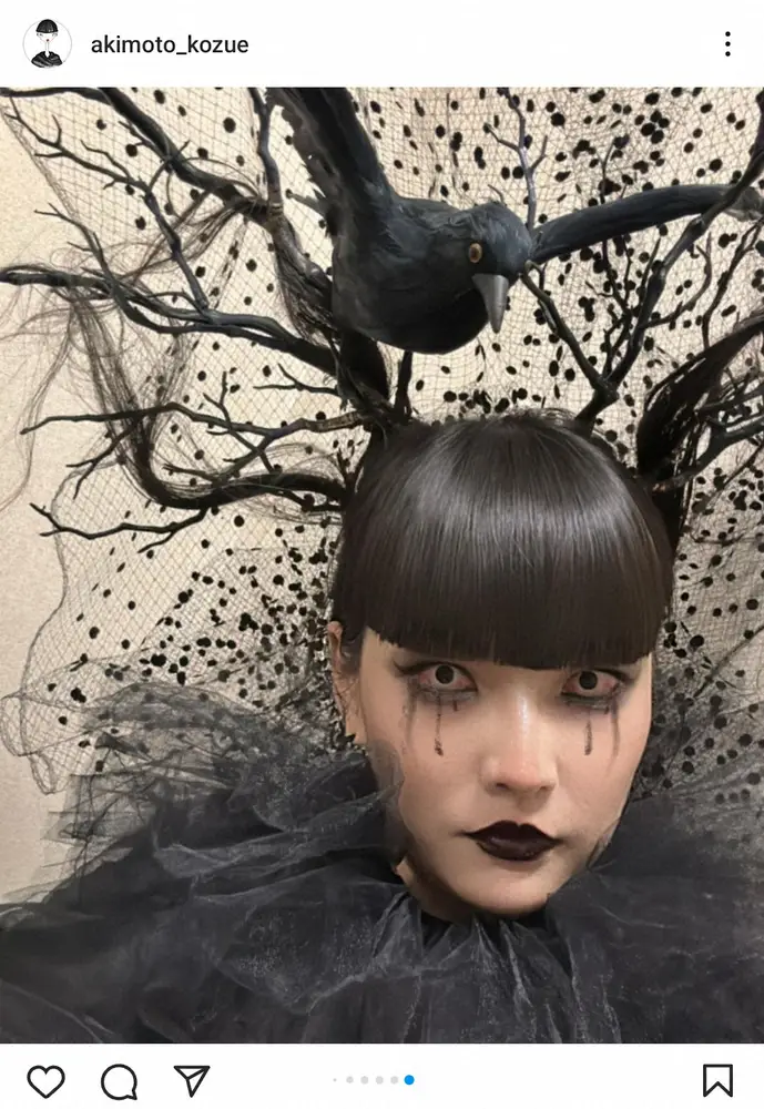 秋元は「2023 SHIMA HAIR SHOW」とコメント。ホラーをテーマにしたヘアショーに出演したことを、写真や動画で伝えた。
