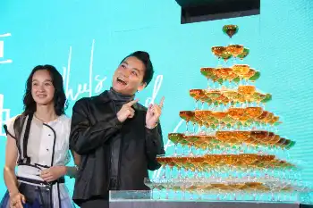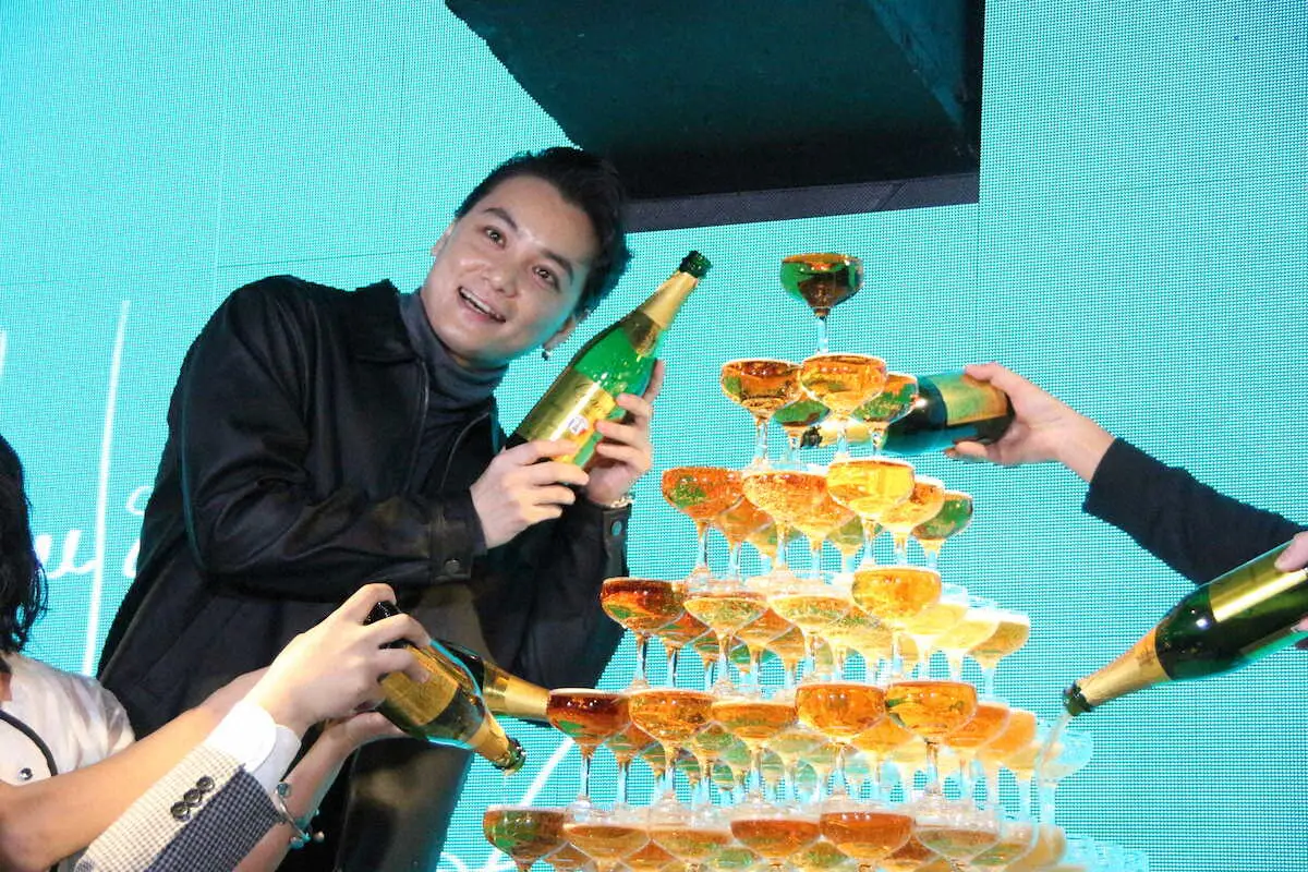 俳優の矢野聖人(31)が17日、新宿・歌舞伎町を舞台にした主演映画「車軸」(松本准平監督)の会見に登場。204個のグラスを積み上げた高さ約1メートルのタワーに、共演者らとシャンパンを注ぎ入れ、作品のヒットを祈念した。