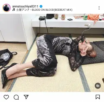 土屋は「土足厳禁な楽屋でゆったりくつろぐ土屋をご覧ください」とコメント。ハッシュタグで「お仕事の合間」と添え、楽屋で寝転び、くつろぐ姿を掲載した。