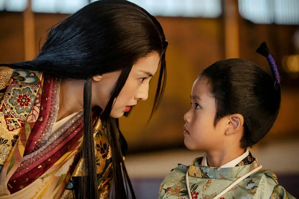 大河ドラマ「どうする家康」第44話。茶々(北川景子)は豊臣秀頼(重松理仁)に「あの狸、決して信じるでないぞ」――(C)NHK