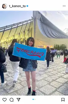 「昨日、小学校からの友達とマカロニえんぴつのライブに行ってきました」とライブ会場となった国立代々木競技場第一体育館前でタオルを手にした写真をアップ。マカロニえんぴつは18日に同所でライブを行っており、そこに参加したと思われる。