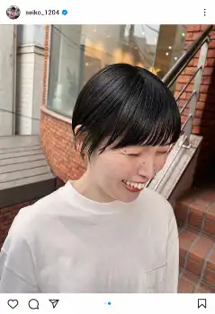 誠子は「緑いれた」とコメント。切りっぱなしのショートボブに、さりげなく緑色を入れたヘアカラーを披露した。