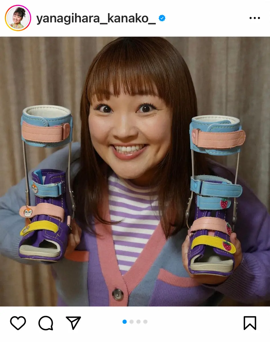 お笑いタレントの柳原可奈子(37)が20日、自身のインスタグラムを更新。脳性まひを公表した4歳・長女の「短下肢装具」が完成したことを報告した。