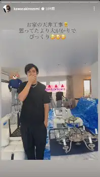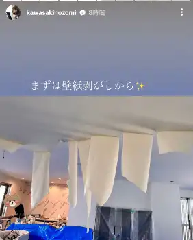 また、川崎も自身のインスタグラムのストーリーズで「お家の天井工事 思ってたより大がかりでびっくり まず壁紙はがしから」と報告している。