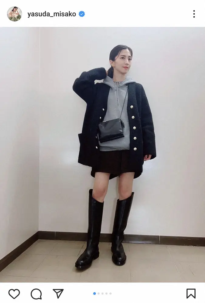 安田の投稿に、フォロワーからは「かっこいい」「スタイリッシュ」「足なが~い」「ブーツ 似合ってるぅ」「脚がキレイ」「美沙子さんとても似合っていて魅力的でキレイですね」といった反響が寄せられている。