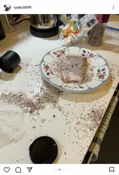 実はその前日にも、森山は「やっちゃいました」と投稿。「グラインダーをアレこうかな?アレ!?って回して居たら蓋ごと取れてハーブ入りの塩がこのようにあたり一面ばら撒かれた」と、テーブルや床の悲惨な様子を公開していた。