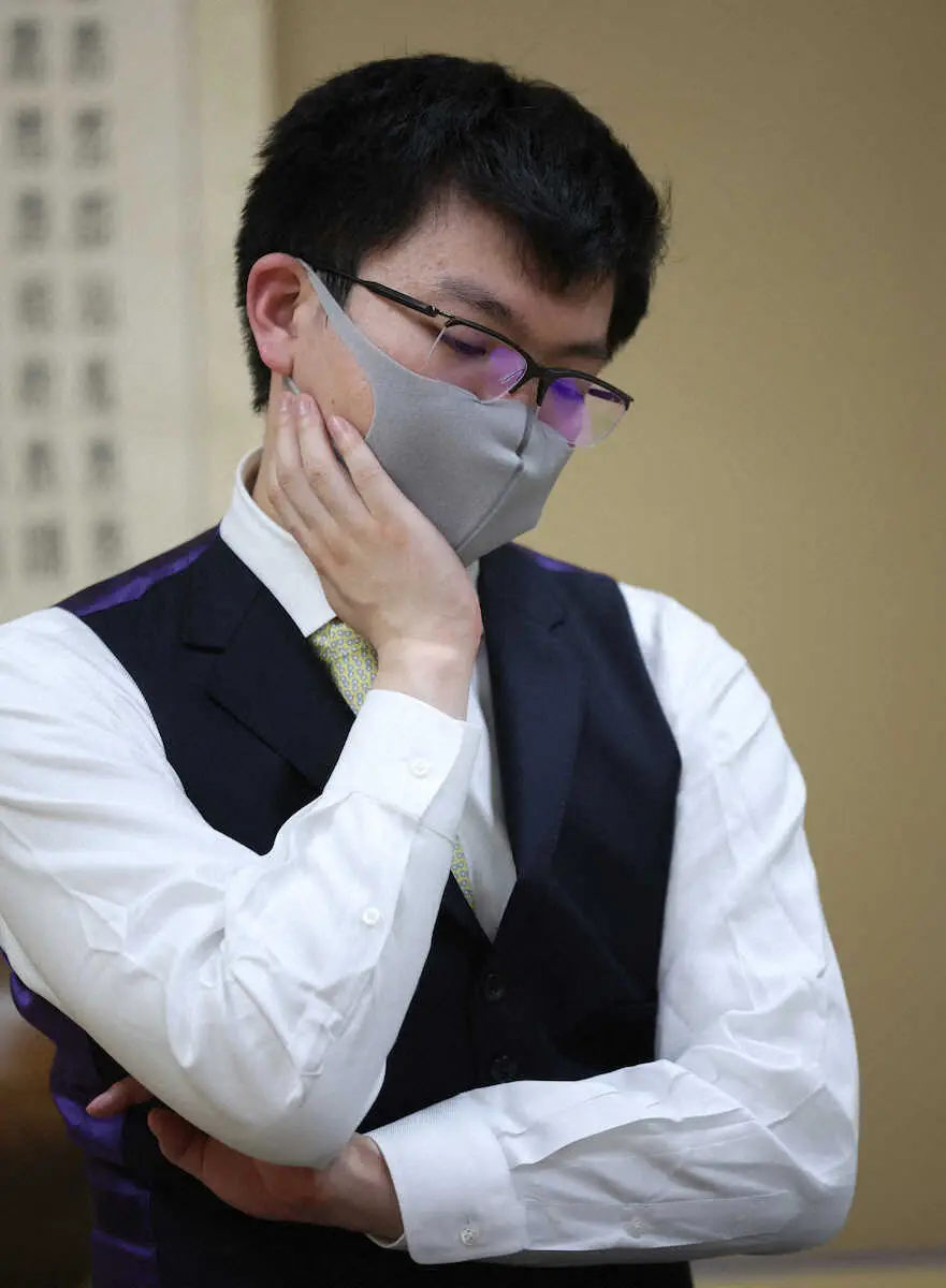 勝機は確かにあった。角換わり腰掛け銀の陣形で、午前中は消費時間わずか3分で65手まで進行し「予定通りでした」と明かす。もはやトレードマークとなった前半の超早指し。研究の深さを相手に見せつけて奪ったリードは終盤の入り口にかけて徐々に怪しくなる。左辺からの猛攻を受けた自王を右辺に回避させ、105手目で▲3三桂成と踏み込んだ。だか「形勢を損ねた可能性があるとは思っていたんですが…」。その後もチャンスがあったが逃してしまい、163手目を指さず駒を投げた。
