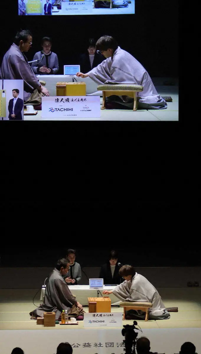 羽生会長が表彰状を読み上げ、羽生九段が受け取る「セルフ表彰式」が披露された Photo by スポニチ 羽生善治九段 「初代達人」に輝き1人2役 「優勝、羽生善治」“セルフ表彰… ギャラリーで見る この記事のフォト 2023年11月26日の画像一覧 もっと見る 2023年11月26日の画像をもっと見る