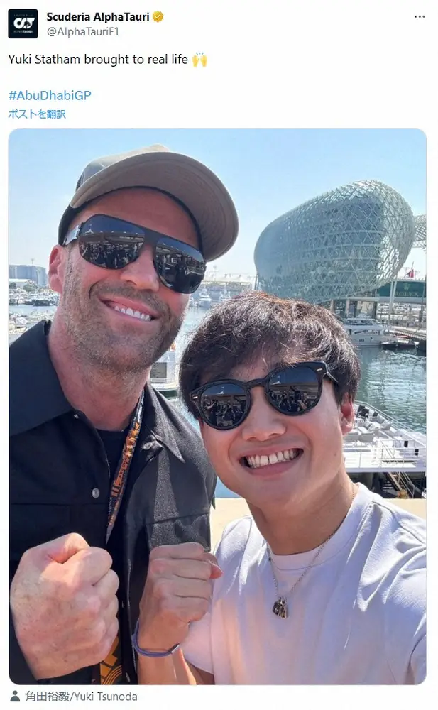 ジェイソン・ステイサムのインスタグラム(@jasontatham)より 左からジェイソン・ステイサム、角田裕毅 ジェイソン・ステイサム “息子”F1角田裕毅との2ショにファン胸アツ「どっ… ギャラリーで見る この記事のフォト 2023年11月27日の画像一覧 もっと見る 2023年11月27日の画像をもっと見る
