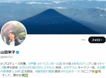 「赤毛のアン」アン役、「キャプテン翼」岬太郎役などで知られる声優の山田栄子(70)が27日、自身のX(旧ツイッター)を更新。運転中に起こった出来事を報告し、心配の声が寄せられている。
