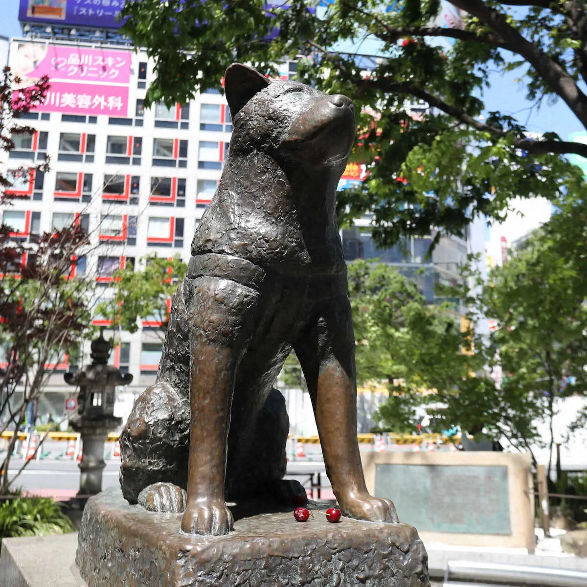 1923年(大12)、現在の秋田県大館市で生まれたハチ。昭和初期、帰らぬ人となった飼い主を待ち続け、約10年も渋谷駅に通った実話は国内のみならず、リチャード・ギア主演で2009年に「HACHI 約束の犬」のタイトルでハリウッド映画化されるなど、世界中の涙を誘い、「ハチ公の街」として多くの外国人が渋谷を訪れている。