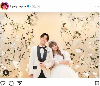 歌手きゃりーぱみゅぱみゅ(30)が28日、自身のインスタグラムを更新。今年3月に結婚を発表した俳優の葉山奨之(27)とのウエディング2ショットを投稿した。