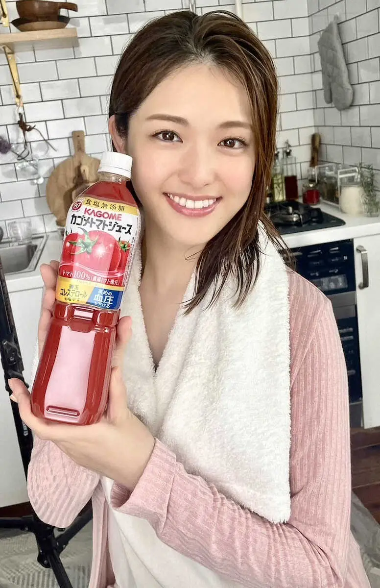 「『カゴメ トマトジュース』の広告に出演させていただくことになりました…」と報告。「みなさんも“そこはトマジュで”自宅編/温泉編/パック編 どれが1番のお気に入りか教えてください」とつづっている。