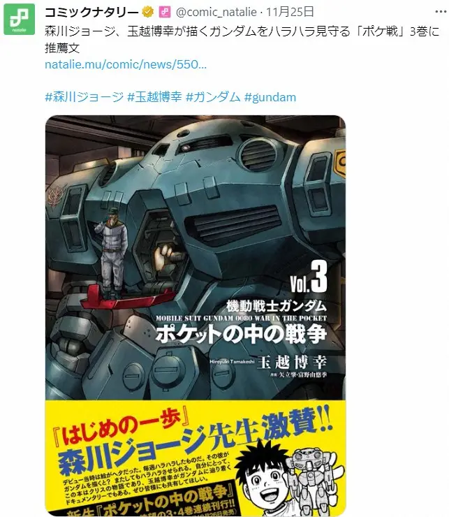 玉越博幸氏X(@H_tamakoshi)から 「BOYS BE…」漫画家・玉越博幸氏 がん再発のため休載 「ガンダム ポケ… ギャラリーで見る この記事のフォト 2023年11月30日の画像一覧 もっと見る 2023年11月30日の画像をもっと見る