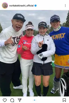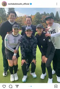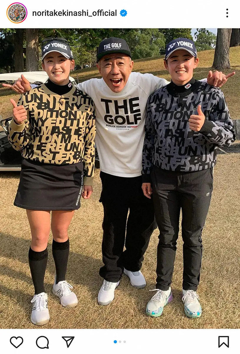 「プロゴルファー岩井姉妹!2024スポーツ王オープン!小栗旬・右京さんもオープン!?」とコメントを添え、今年大活躍の女子プロゴルファー岩井明愛・千怜の双子姉妹との3ショット写真を含めた3枚の写真をアップ。