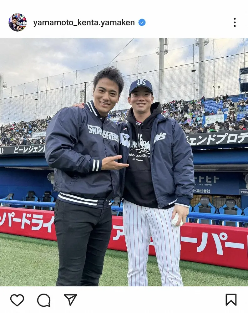 フジテレビの山本賢太アナウンサー(25)が1日までに自身のインスタグラムを更新。ヤクルトのファン感謝デーの司会を務めたことを明かし、木沢尚文投手(25)との2ショットを披露した。