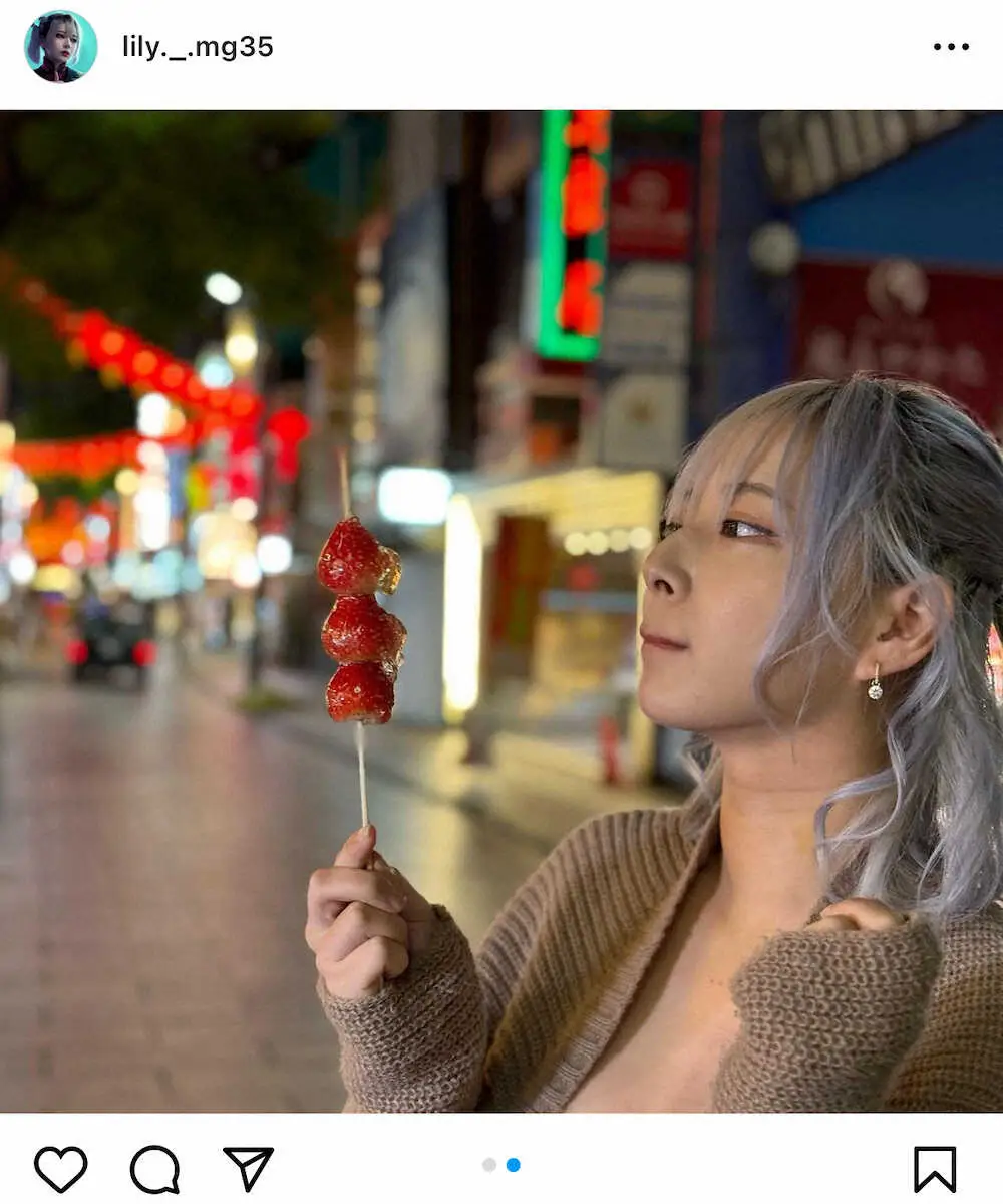 清水はこの日、自身のインスタグラムで「いちご飴毎日でも食べたい」とつづり、いちご飴を頬張る写真などを投稿した。