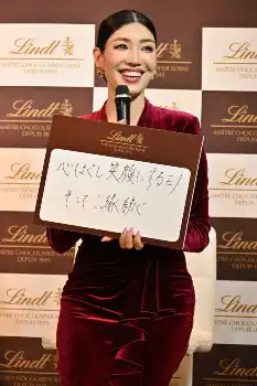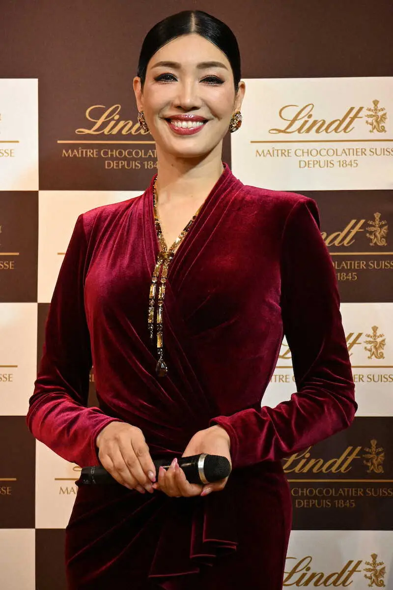 アンミカは、新商品のギフトコレクション「リンツメートル・ショコラティエセレクション」のイメージカラー、バーガンディーのドレスとアクセサリーを身にまとい登場。「チョコレートが大好きで、夫と毎日一粒食べているんですね」と夫で実業家のセオドール・ミラー氏(52)との毎日の日課を明かし、「チョコレート専用の冷蔵庫があります」と“キムチ冷蔵庫”やチルド室をチョコレート限定の冷蔵庫にするほどチョコレートが大好きだという。