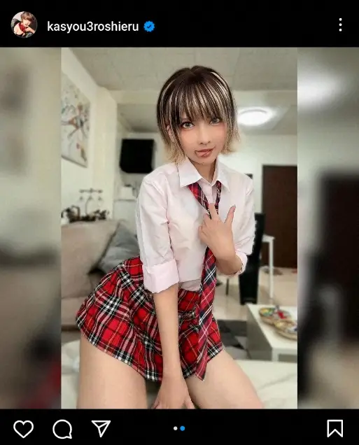 人気コスプレーヤーの火将(かしょう)ロシエル(年齢非公表)が4日までに自身のインスタグラムを更新し、超ミニの制服ショットを公開した。