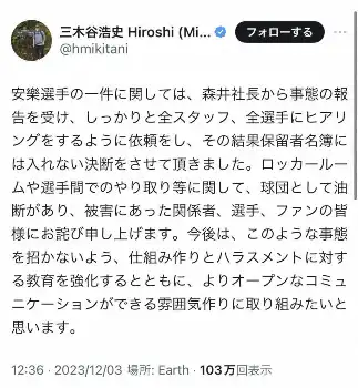 同日、都内の小学校で行われたJA共済「好きがみつかるスポーツテスト」の課外授業に出席。前田裕太(31)は安楽について聞かれ「先輩として、何かしてあげられることがあったかと言うと、4年ちょっと差があるので…」と吐露。「子供たちが野球をやりたいと思わなくなるようなことをしたのはプロとして良くないと思います」と話した。