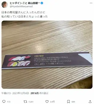 ヒャダイン「寿司屋さんに入ったんだけど…」謎の説明が書かれた箸袋を投稿「どこの世界線!?笑」と話題