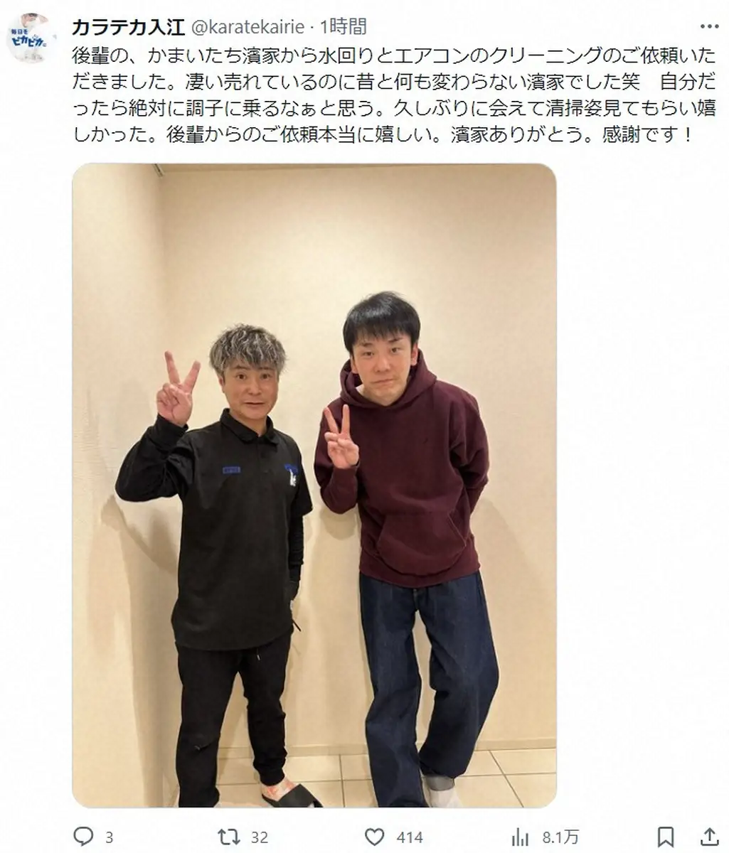 「カラテカ」の入江慎也 Photo by スポニチ カラテカ入江 後輩の超売れっ子芸人から仕事依頼「凄い売れているのに昔… ギャラリーで見る この記事のフォト 2023年12月06日の画像一覧 もっと見る 2023年12月06日の画像をもっと見る