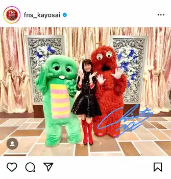 黒ミニスカートに赤いブーツというビビットな衣装で登場。ガチャピンとムックと一緒の歌唱となった。