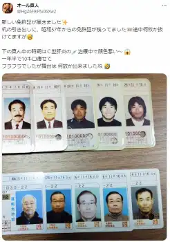 また、過去の免許証の中に、歯を見せて笑っている写真が使われていた。この写真に「昔は笑顔で良かったんですね!いいですね!今は笑顔で撮ろうとすると注意されちゃいますよね」「免許証の写真って歯出して笑った写真NGなんですよ!わたしは笑顔の写真にしたかったのに、警察の方にダメと言われました。昔は良かったんですか?だとしたらとても貴重です」「歯を見せてもOKだったんですね!今ならパンパンにやられますよ」「免許証も変化してるんだなぁ」と、驚く声が寄せられた。