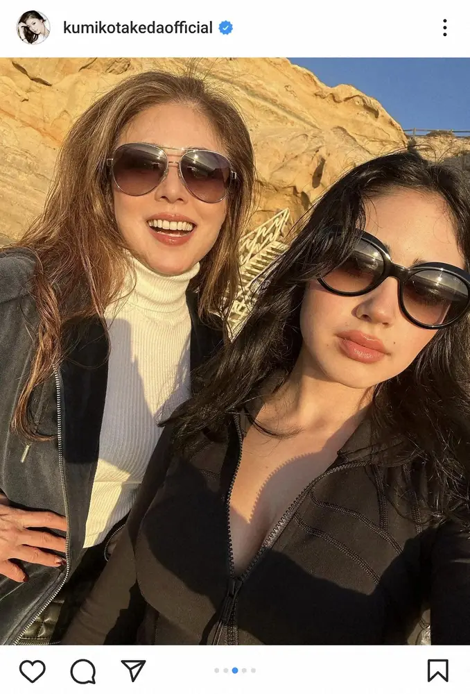 「娘と一緒に色んな話をしながら楽しい時間を過ごせました」と黒と茶色のジャケットにサングラス姿の娘とのショットなども投稿すると、「最高にゴージャスだったサンセットはまた後ほど」とつづった。