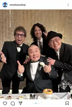 自身と山本、「ロンドンブーツ1号2号」の田村淳、「ココリコ」の遠藤章造との4ショットや、自身と妻でタレントの藤本美貴、山本と西野のショットや、自身と藤本、淳、相方の品川祐との4ショットなども投稿した。