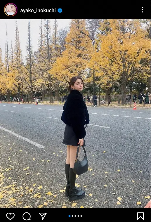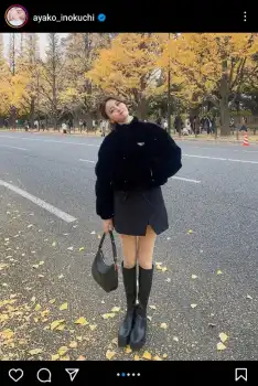 タレントの井口綾子(26)が7日、自身のインスタグラムを更新。イチョウ並木をバックにした超ミニスカ&ロングブーツ姿を公開した。