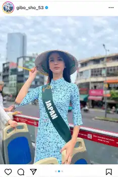 大学生の大城さんは、8月に開催された世界4大ミスコンテストの一つ「ミス・アース」の日本大会「ミス・アース・ジャパン」で優勝。ベトナムで開催されている世界大会に出場している。宜保が紹介した写真の中には、ベトナムの伝統衣装「アオダイ(アオザイ)」を着て、ポーズをとるものもあった。