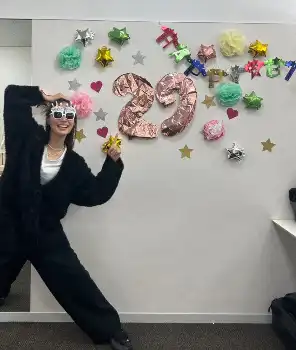 広瀬は、「29」の数字や星、ハートなどのかわいい飾りでデコレーションされている壁の前で、最高の笑顔を見せる2枚の写真を添え、「お祝いしていただきました 浮かれてすみません」とツイート。