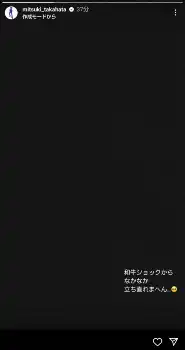 高畑は「和牛ショックからなかなか立ち直れまへん…」とコメント。しょんぼりした顔文字とともに、真っ黒な画面に小さくテキストを入れ、ショックの大きさを表現した。