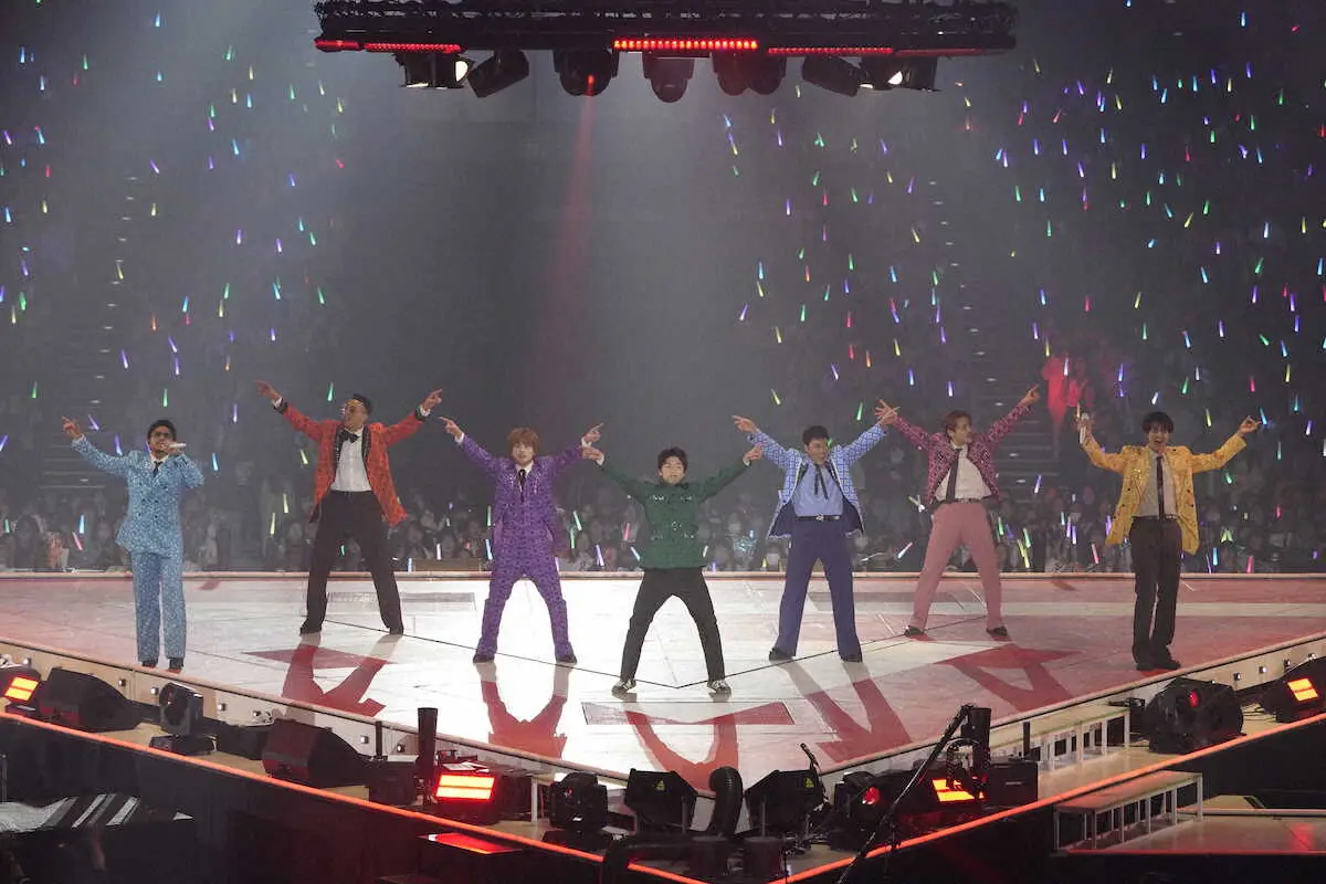 全国ツアーの最終公演を行った「GENERATIONS」の(前列左から)小森隼、白濱亜嵐、数原龍友、中務裕太、片寄涼太、佐野玲於、関口メンディーと、サプライズで登場した「三代目 J SOUL BROTHERS」の(後列同) 岩田剛典、NAOTO、登坂広臣、小林直己、今市隆二、ELLY、山下健二郎 Photo by スポニチ GENERATIONS、今年の漢字は… 白濱亜嵐「繋がることができた」デビュー10… ギャラリーで見る この記事のフォト 2023年12月14日の画像一覧 もっと見る 2023年12月14日の画像をもっと見る