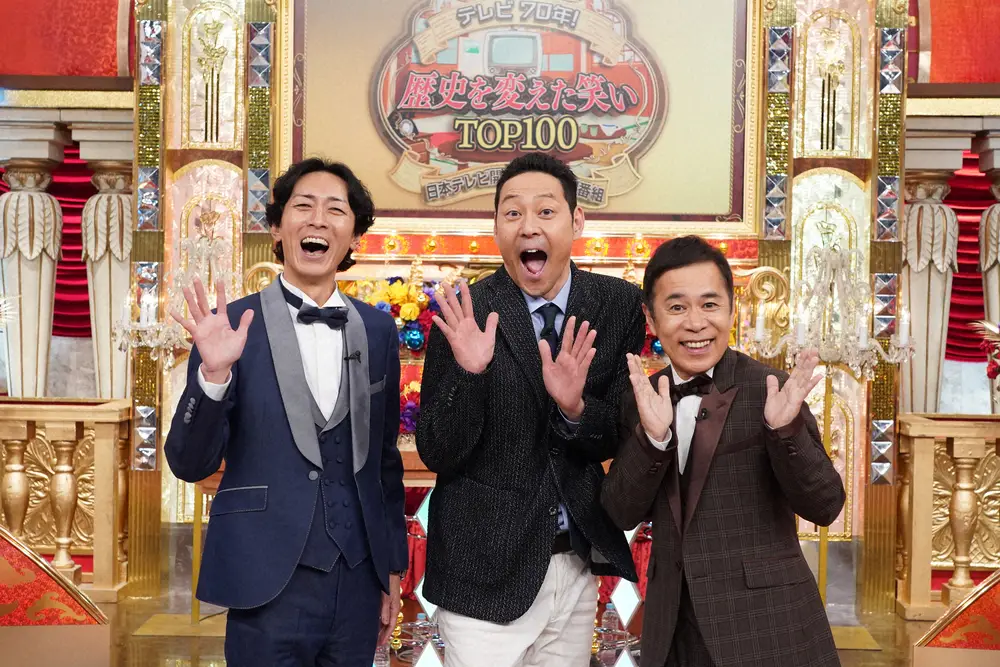 同番組は12月31日、10時間に渡って放送される大型特番。「歴史を変えた笑いTOP100」では、テレビ史に残る伝説番組の爆笑名シーンを部門ごとにノミネート。豪華ゲストとともに、各部門の最優秀賞を決定する。MCは東野幸治とお笑いコンビ「ナインティナイン」が務める。