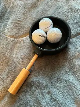 「娘がミートボールを作ってくれました!硬くて美味しい!と伝えました」とツイート。鉄製のフライパンにゴルフボールが3つ乗った写真を1枚添えた。