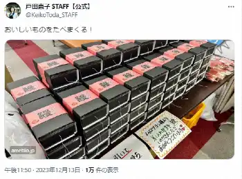 女優の戸田恵子(66)が14日までに自身のブログ、SNSを更新。俳優のムロツヨシ(47)から、ドラマの撮影現場に差し入れられた逸品を紹介した。